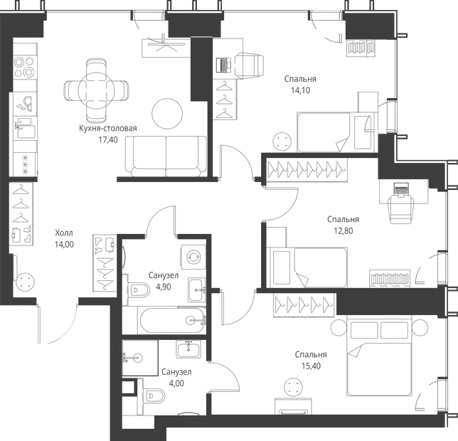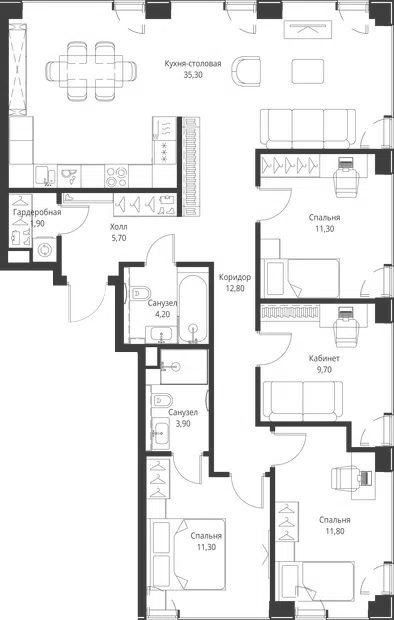 4 спальни