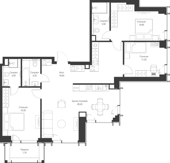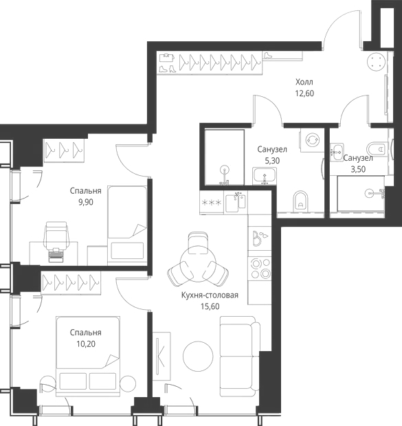 3 спальни