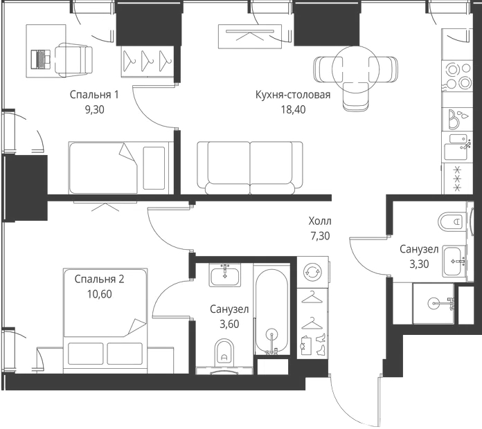 2 спальни