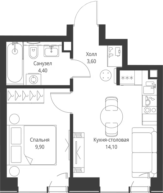 1 спальня